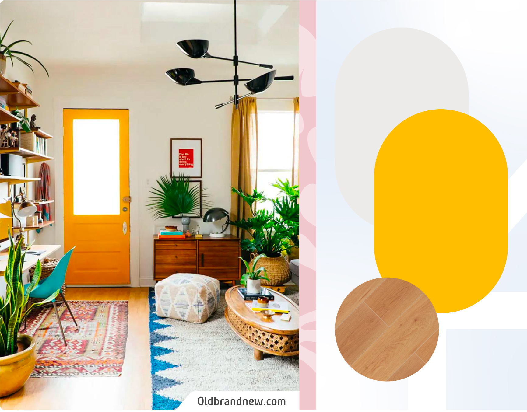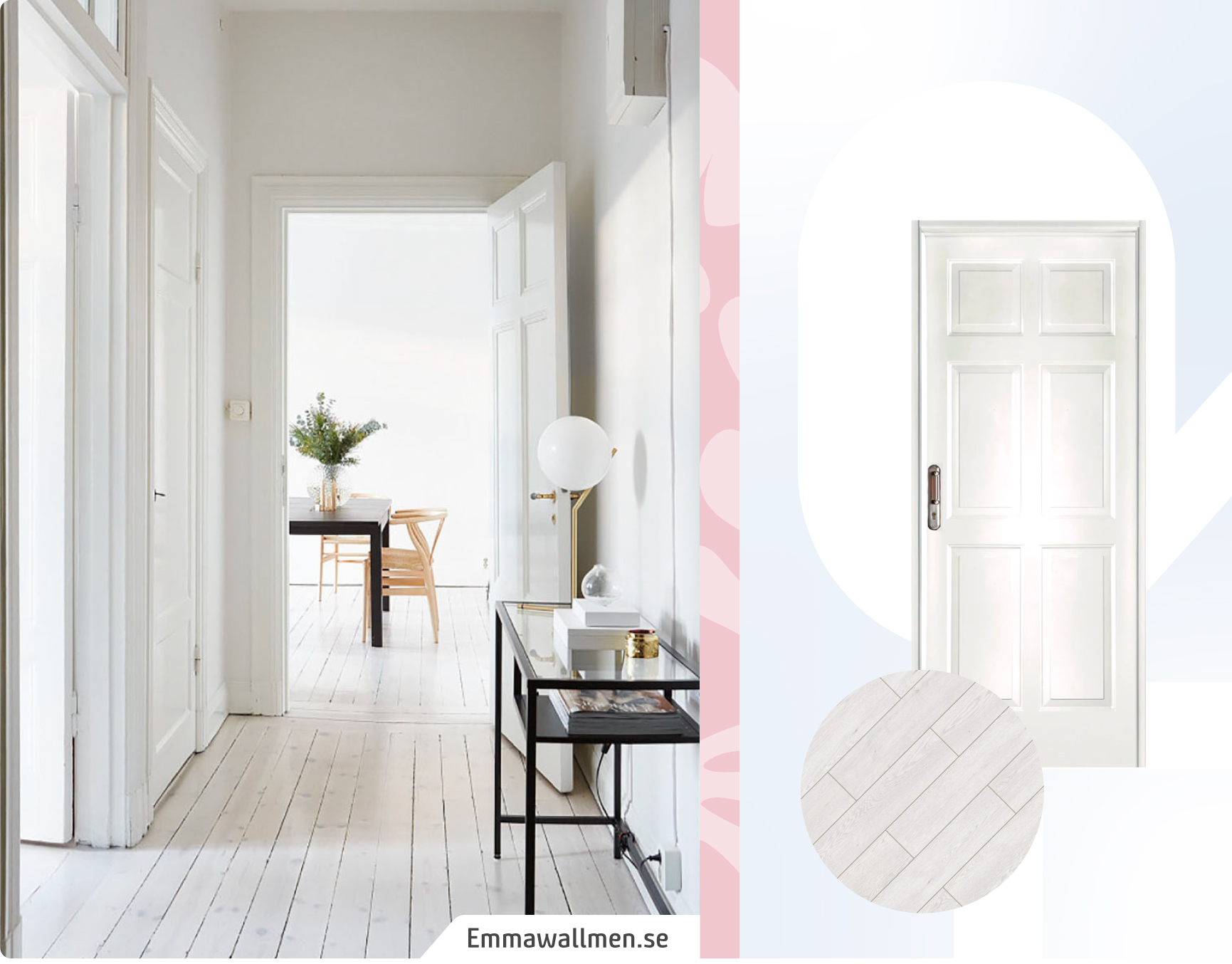 ¿Un ejemplo que no falla? Muros blancos, puertas de colores y piso de madera.