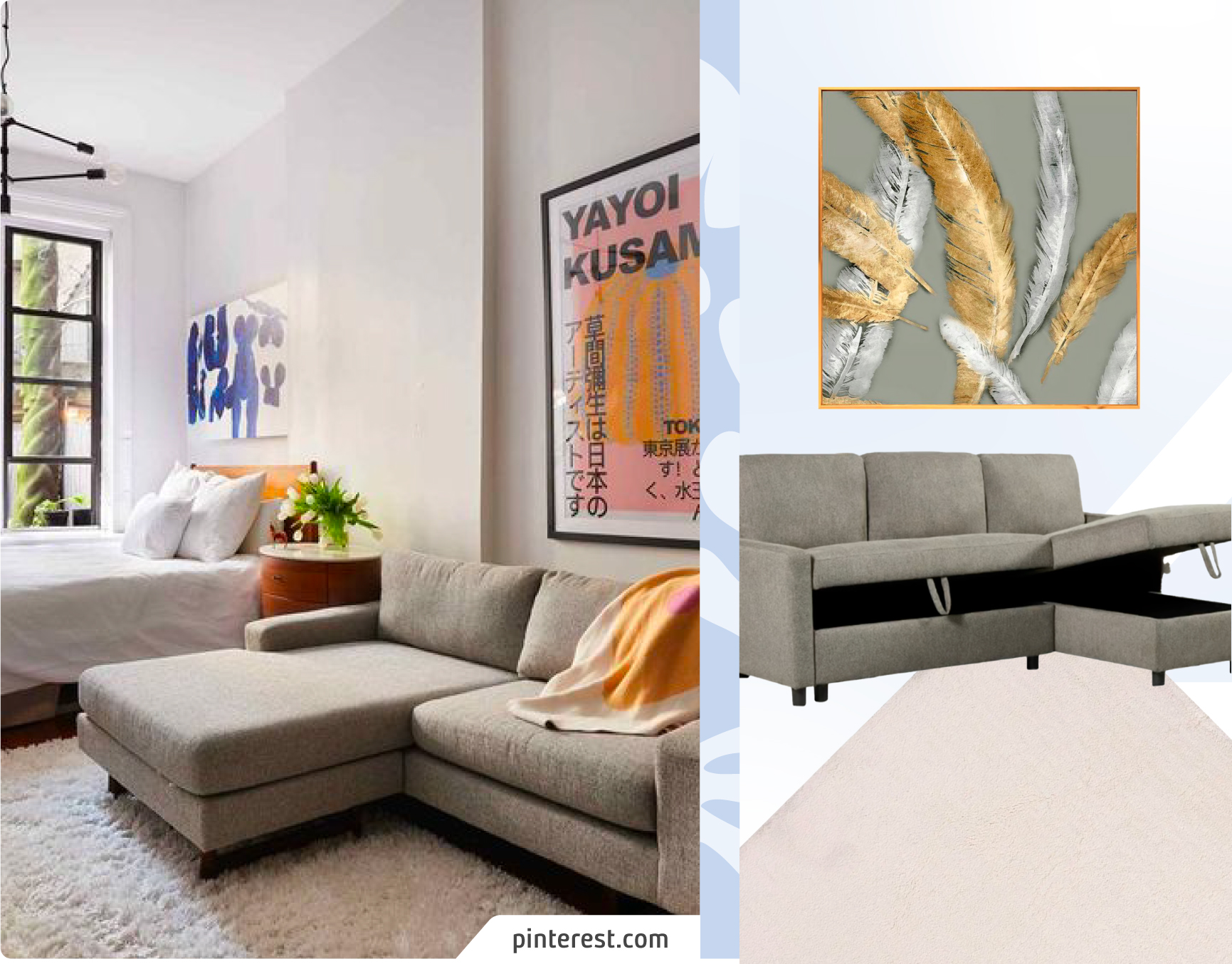 - Puedes poner un futón o sofá cama que durante el día funcione como un sillón, y por la noche se transforme en una cama.