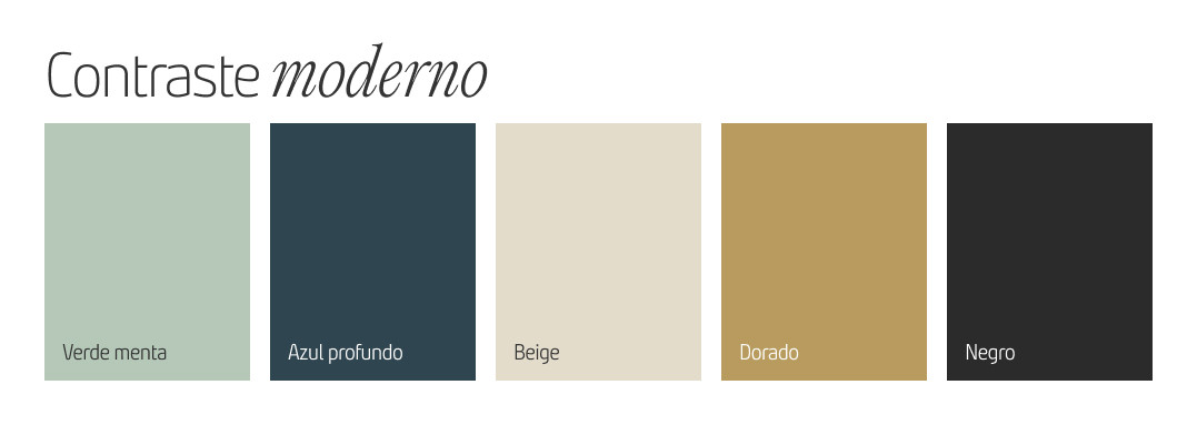 Esta paleta de color es perfecta para espacios modernos y audaces que buscan un equilibrio entre frescura y profundidad.